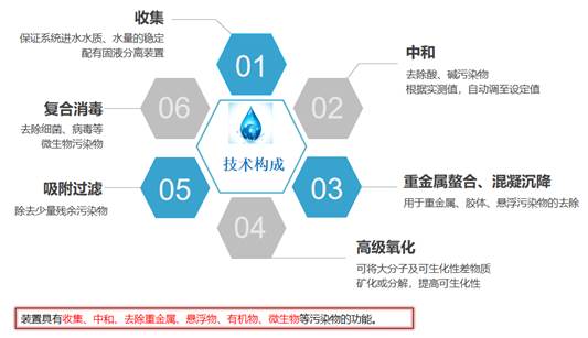 該系統(tǒng)針對(duì)不同的有機(jī)、無(wú)機(jī)、生物類廢水成分和濃度采用不同的處理技術(shù)和工藝進(jìn)行綜合處理,可有效去除綜合廢水中的COD、BOD、SS、色度、病毒、有機(jī)溶劑和重金屬離子等,處理后達(dá)標(biāo)排放。
