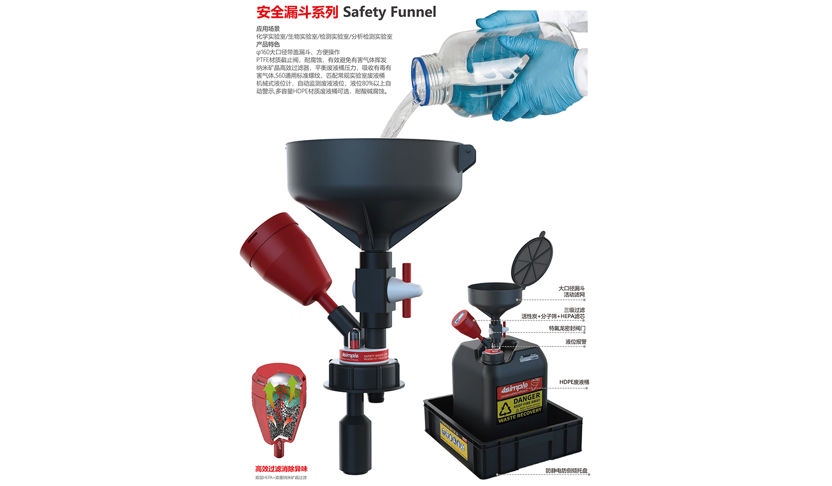 ? 直徑160mm的大口徑帶蓋漏斗,方便操作;